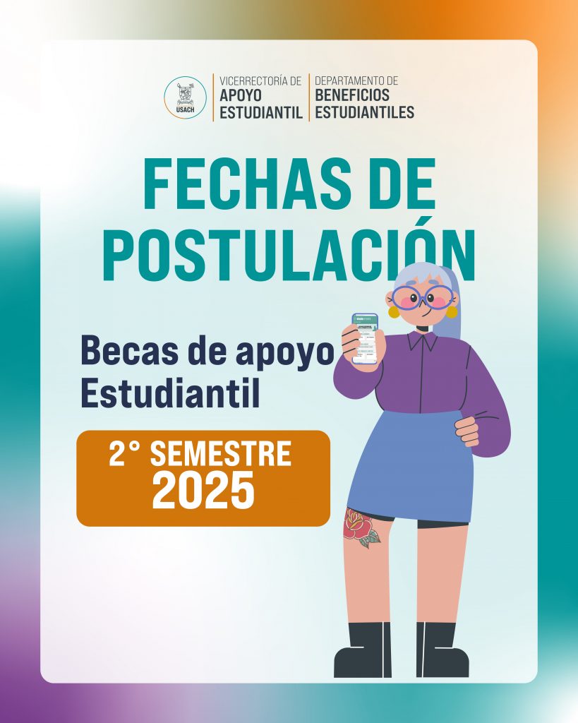 Las postulaciones se encontrarán abiertas entre el 23 de julio y el 06 de agosto de 2025 en el sitio web: becas.usachatiende.cl.