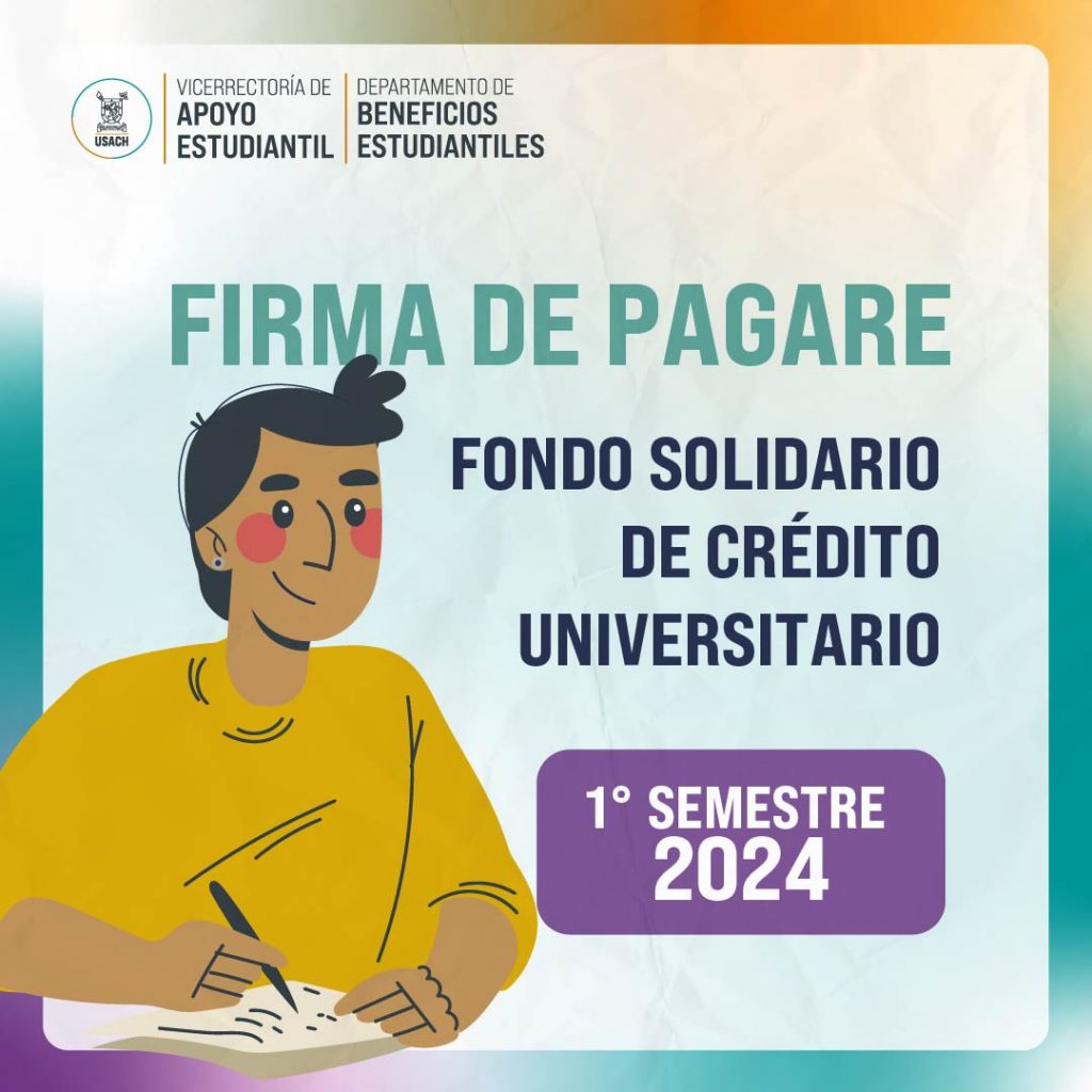 Este martes 23 y miércoles 24 de julio se encontrará habilitada la opción de firmar el pagaré para quienes fueron favorecidas o favorecidos con el Fondo Solidario del primer semestre. Para realizar el trámite, ya sea si eres alumno nuevo o antiguo, deberás acercarte de manera presencial a la instalación ubicada al frente de las oficinas de la Vicerrectoría de Apoyo Estudiantil (VRAE), esto es al final del Paseo de los Naranjos, entre las 09:15 y 13:15 horas del martes o del miércoles.